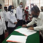 CIREBON, (cirebonbagus.id).-Wali Kota Cirebon Nashrudin Azis menyaksikan pengukuhan Pengurus dan Dewan Kehormatan PMI Kota Cirebon periode 2021-2026 di Ruang Adipura Kencana Balai
