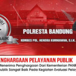 Kab Bandung – Polresta Bandung meraih penghargaan pelayanan publik berkategori sangat baik atau predikat A dari Kementerian Pendayagunaan Aparatur Negara dan Reformasi