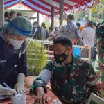 KUNINGAN – Dandim 0615/Kuningan, Letkol Czi David Nainggolan menjalani vaksinasi Covid-19 dalam Launching Imunisasi Covid-19 Tingkat Kabupaten Kuningan di UPTD Puskesmas Garawangi,