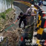 Cimahi,- Satgas Subsektor 13 Cimahi Selatan memulai kegiatannya dengan berpatroli di bantaran sungai Cimahi, Cikendal, Cibaligo, Cibabat dan Ciujung, hari Minggu, 3/1/2021).