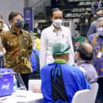 Presiden Jokowi Berada Diantara Awak Media Saat Pelaksanaan Vaksinasi