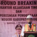 BANDUNG, — Gubernur Jawa Barat (Jabar) Ridwan Kamil bersama Kepala Kejaksaan Tinggi Provinsi Jabar Ade Adhyaksa melakukan groundbreaking pembangunan Gedung Kejaksaan Tinggi