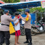 Lagi, Yon D Pelopor Brimob Polda Metro Jaya Bagikan Masker di Area Pasar Kabupaten Bekasi