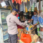 JAKARTA – Dansubden Jibom AKP M Syahroni, S.H, M.Si menyerahkan bantuan masker kepada warga di Pasar Supi, Kecamatan Palmerah, Jakarta Barat, Rabu