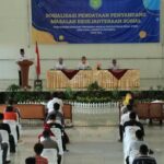 SUKABUMI– Pjs Bupati Sukabumi R. Gani Muhamad memberikan arahan dalam pembinaan pegawai Perumda BPR Sukabumi tentang persoalan ekonomi di masa pandemi covid