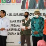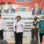 SUBANG– Menteri Desa, Pembangunan Daerah Tertinggal, dan Transmigrasi (Mendes PDTT), Abdul Halim Iskandar dan Menteri Sosial, Juliari P Batubara meninjau penyaluran Bantuan