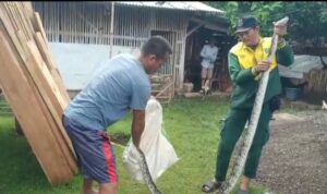 KAB. CIANJUR, — Satu ekor ular piton besar degan panjang 4 meter yang kerap memangsa ternak peliharaan milik warga di Kampung Cinangsi