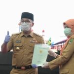 BANDUNG, — Gubernur Jawa Barat (Jabar) Ridwan Kamil mengikuti acara “Penyerahan Sertipikat Tanah untuk Rakyat se-Indonesia” bersama Presiden Republik Indonesia (RI) secara