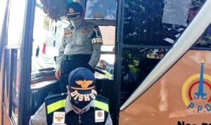 TVBERITA.CO.ID – Dinas Perhubungan (Dishub) Karawang memeriksa penerapan protokol kesehatan di Bus Karyawan yang melintas di Interchange Tol Karawang Barat, Rabu (30/9/2020). Kepala