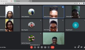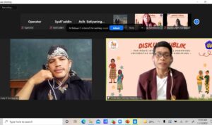 Diskusi publik online yang diselenggaran mahasiswa KKN UNSIKA dengan penulis buku 54 Cerita Babad & Legenda Karawang, Asep R Sundapura, dilakukan pada