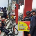 BANDUNG BARAT– Anggota Kompi 1 Batalyon B Pelopor Satbrimob Jabar melaksanakan kegiatan patroli menyampaikan himbauan dan edukasi protokol kesehatan dimasa adaptasi kebiasaan