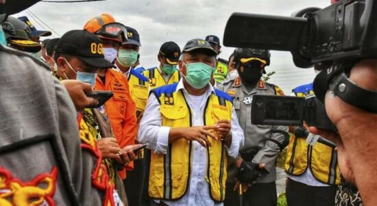 SUMEDANG – Menteri Pekerjaan Umum dan Perumahan Rakyat (PUPR) Republik Indonesia Basuki Hadimuljono meninjau langsung lokasi longsor di Desa Cihanjuang Kecamatan Cimanggung