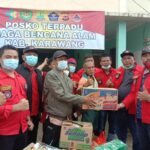 KARAWANG-Pengurus dan anggota Pimpinan Anak Cabang (PAC) Pemuda Batak Bersatu (PBB) Kecamatan Jatisari salurkan bantuan sembako pada para korban Banjir di perumahaan