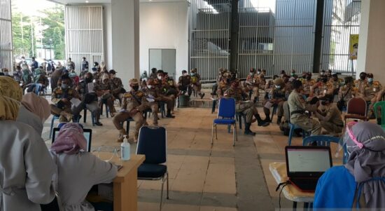Bekasi- Pemerintah Kabupaten Bekasi di Provinsi Jawa Barat mulai melaksanakan vaksinasi Covid-19 pada petugas pelayanan publik di Kompleks Stadion Wibawa Mukti, Kelurahan