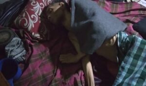 KAB CIANJUR,- Kakek Jejen (63) ) Warga Kampung Cidogdog, RT 03/03, Desa Sukaratu, Kecamatan Bojongpicung, Kabupaten Cianjur, Jawa Barat tergolek lemah di