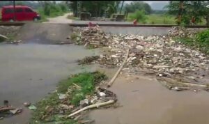 KAB. CIANJUR,- Gorong-gorong di Desa Cipeuyeum di Kampung Cisaar RT 03 RW 08 Kecamatan Haurwangi Kabupaten Cianjur Jawa Barat tersendat tumpukan sampah