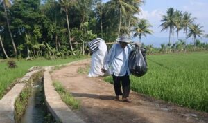 KAB. CIANJUR,- Kakek Ajid (82) warga Kampung Cibendra RT 09/03, Desa Sindangsari, Kecamatan Ciranjang, Kabupaten Cianjur, Jawa Barat tiap hari berjalan kaki