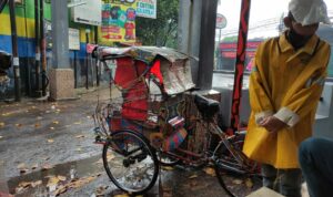 KOTA CIMAHI,- Seorang Tukang Becak yang sering mangkal di pertigaan jalan Paledang Kota Cimahi Bandung Jawa Barat menceritakan susahnya mendapatkan penumpang di