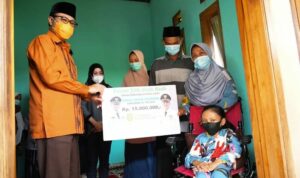 KOTA SUKABUMI,- Salah satu warga Kampung Kubang, Kelurahan Sukakarya, Kecmatan Warudoyong, Kota Sukabumi, Jawa Barat, Abas (60) mendapatkan bantuan sosial berupa uang