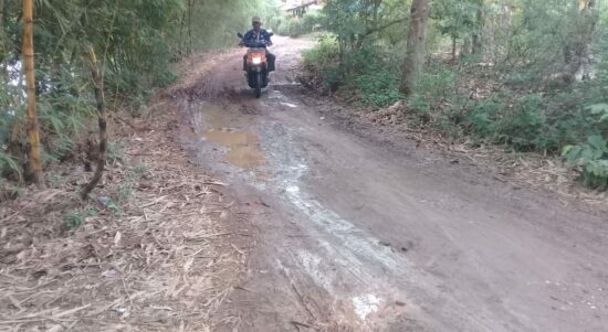 KARAWANG-Jalan poros Dusun II RT 02 RW 04Desa Barugbug Kecamatan Jatisari Karawang Jawa Barat sekitar 50 meter belum tersentuh pembangunan fisik rabat