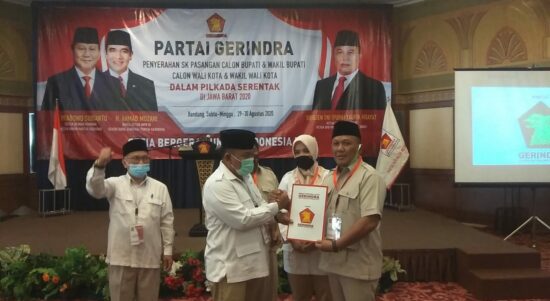 KARAWANG – Dewan Pimpinan Daerah (DPD) Partai Gerindra Jawa Barat hari ini, Minggu (30/8/20) gelar acara penyerahan Surat Keputusan (SK) Pasangan Calon